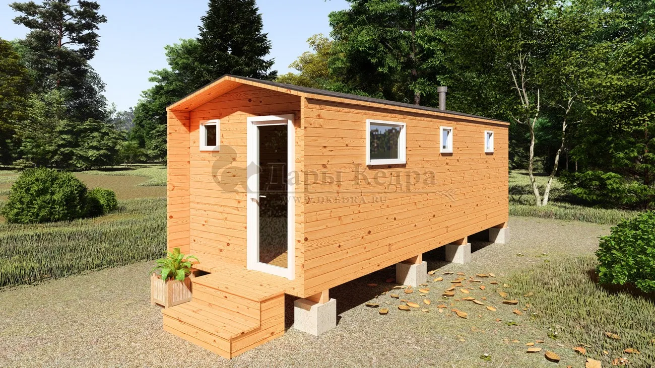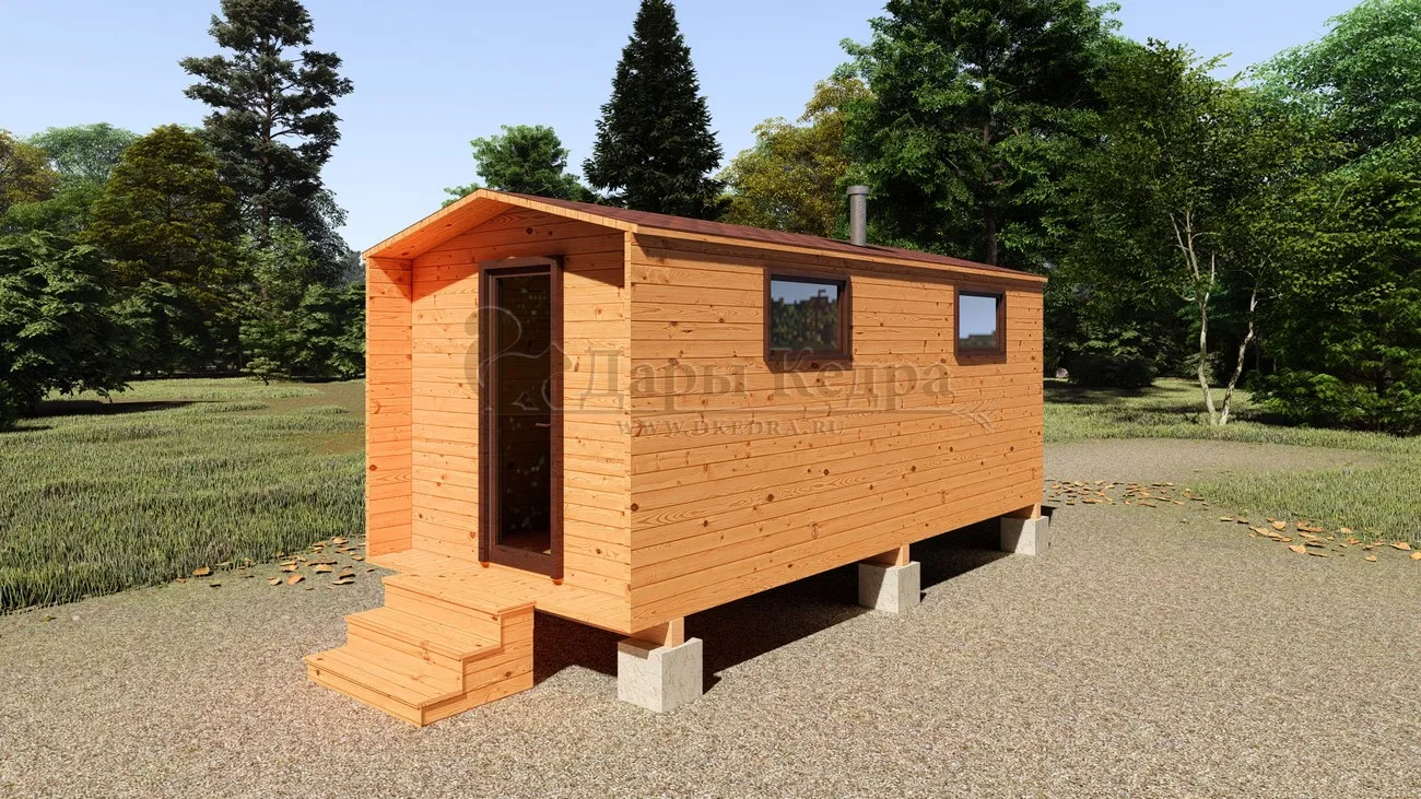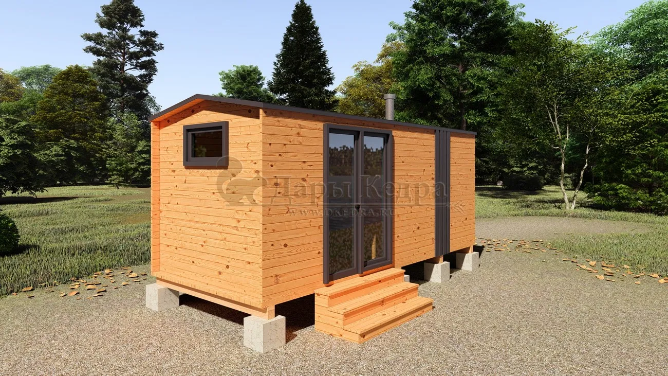 Каркасная баня «Барн» из кедра 5х2,2 метра с боковым входом Каркасная баня 'Барн' из кедра длиной 5 метров – воплощение современного дизайна и функциональности. Этот компактный банный комплекс идеально впишется в ландшафт вашего участка, добавив ему элегантности и уюта. Минималистичный стиль 'барн' с его характерными чертами создает особую атмосферу, а продуманная планировка обеспечивает комфортное пребывание. Идеальное решение для тех, кто хочет получить максимум удовольствия от бани, не жертвуя пространством.