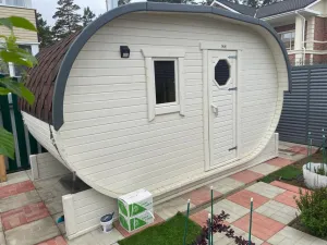 Мобильная баня-бочка с каждым днем набирает все большую популярность благодаря её возможной транспортировки куда угодно: на отдых в лесу, на рыбалку или на побережье реки