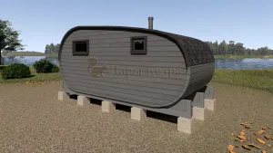 Мобильная баня-бочка с каждым днем набирает все большую популярность благодаря её возможной транспортировки куда угодно: на отдых в лесу, на рыбалку или на побережье реки