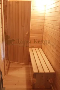 Хорошая небольшая банька. Заказали два года назад, как временную, но пользуемся и по сей день)))А полноценную большую так и не построили до сих пор. Всё временное-постоянно, как говорится)) Спасибо Дарам Кедра за качественную и красивую продукцию!