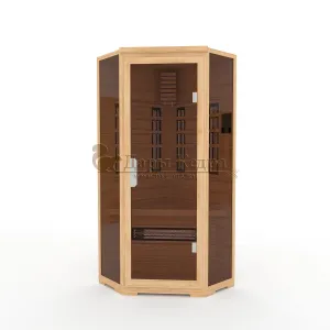 Это специально оборудованная кедровая кабина для прогрева тела человека сухим теплом. Воздух в таких парных не нагревается. Инфракрасные лучи воздействуют на тело, равномерно прогревая мышцы, суставы и органы. Керамические излучатели похожи на лампы, имеют высокую температуру нагрева, поэтому защищены противоожоговыми решетками. Тело человека в таких саунах нагревается интенсивнее. Работает кабина за счет электричества. Установка сауны в угол, позволяет рационально использовать пространство помещения. Подходит как для домашнего использования, так и для коммерции.