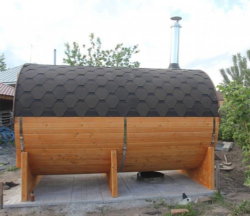 Нашел в интернете такую баню-бочку, решил рискнуть и заказать аж шестиметровую баню. Семья у нас большая, народу много, часто приезжают родственники в гости с ночевкой, поэтому большая баня для нас - это просто необходимость, а не прихоть. Баню изготовили в течение трех недель, потом доставка на место. Собирал сам с братом, примерно пару выходных ушло у нас на сборку. Возможно, профессионал и собрал бы за день, но мы так быстро не умеем работать))) Поэтому не рассчитывайте, что при самостоятельной сборке у вас уйдет день))) Баня получилась шикарная, внутри и снаружи, просто сказка! Топится невероятно быстро для такого размера, я сначала топлю "по-черному" для себя, потом уже по мере остывания идут все остальные, кто не любит жару...В общем, все в восторге!!!